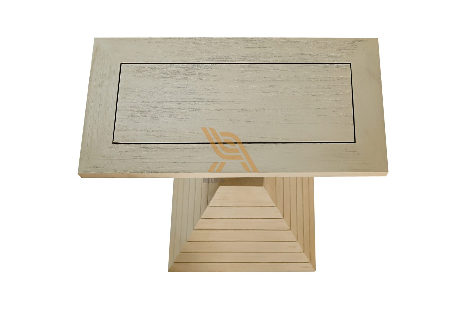 This Square Side Table / Café Table brings a bold architectural touch to any space with its unique pyramid-shaped base. The combination of a solid teak wood top and a geometric pyramid base offers a balance of modern design and excellent stability.