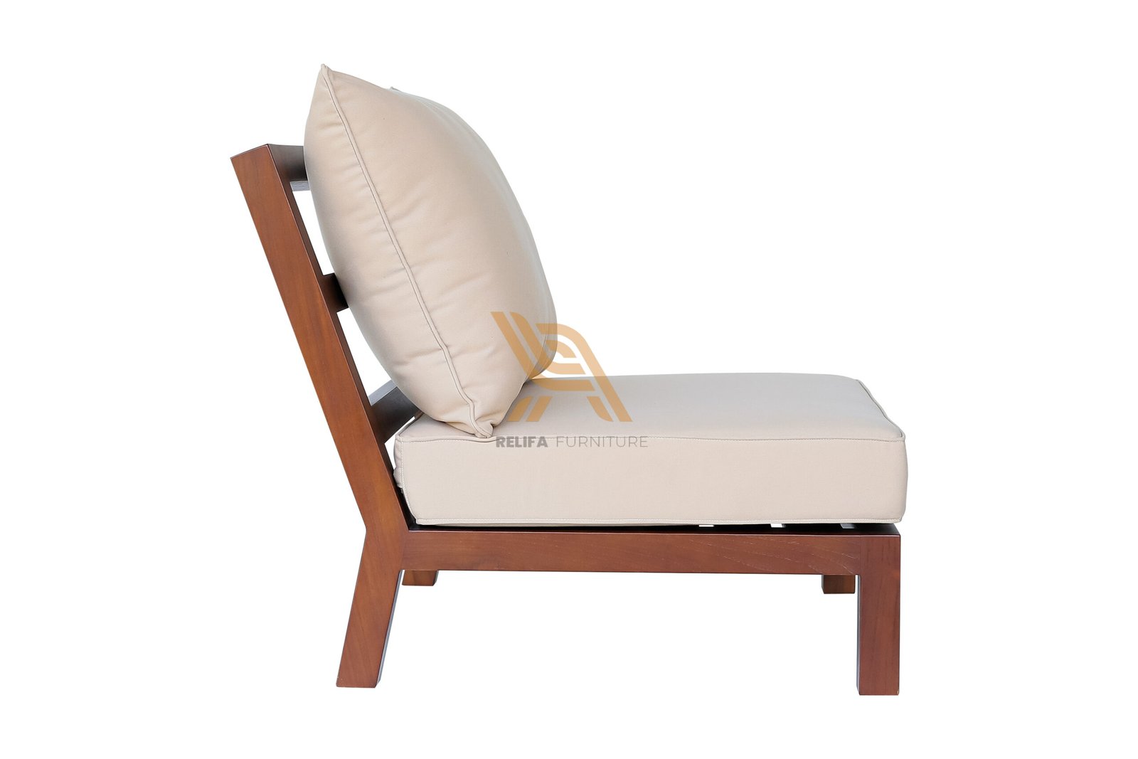 Teak Modular Armless Outdoor Lounge Chair with Cushions – Handcrafted Wooden Frame PT Relifa Art Furniture Teak Outdoor Furniture Indonesia